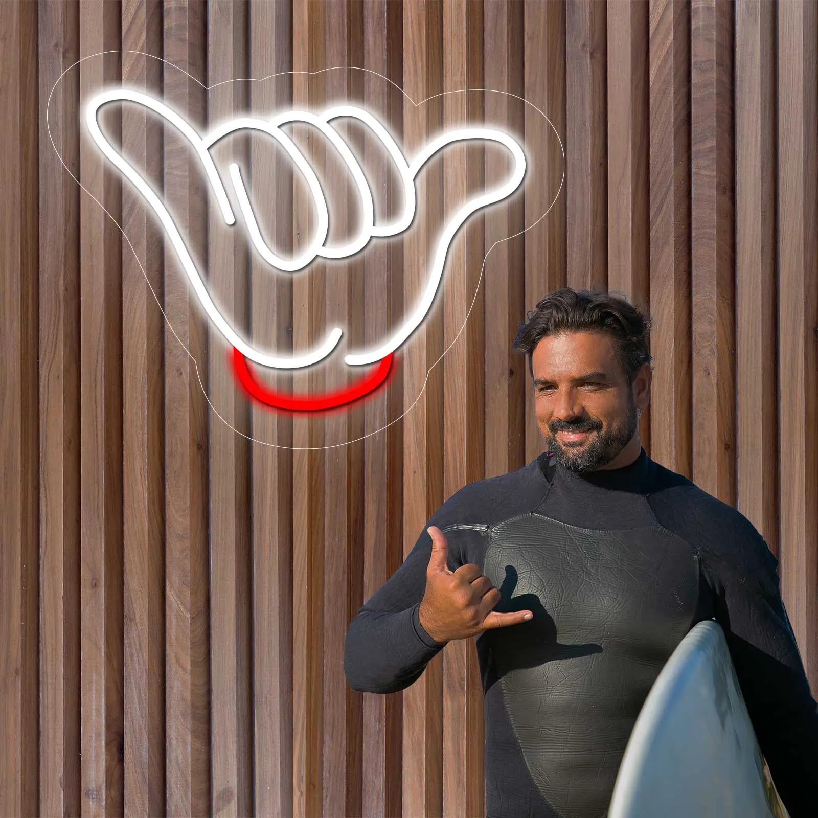Cartel LED Neón Mano Pura Vida, 45 x 34,6 cm, Luz Blanca y Roja