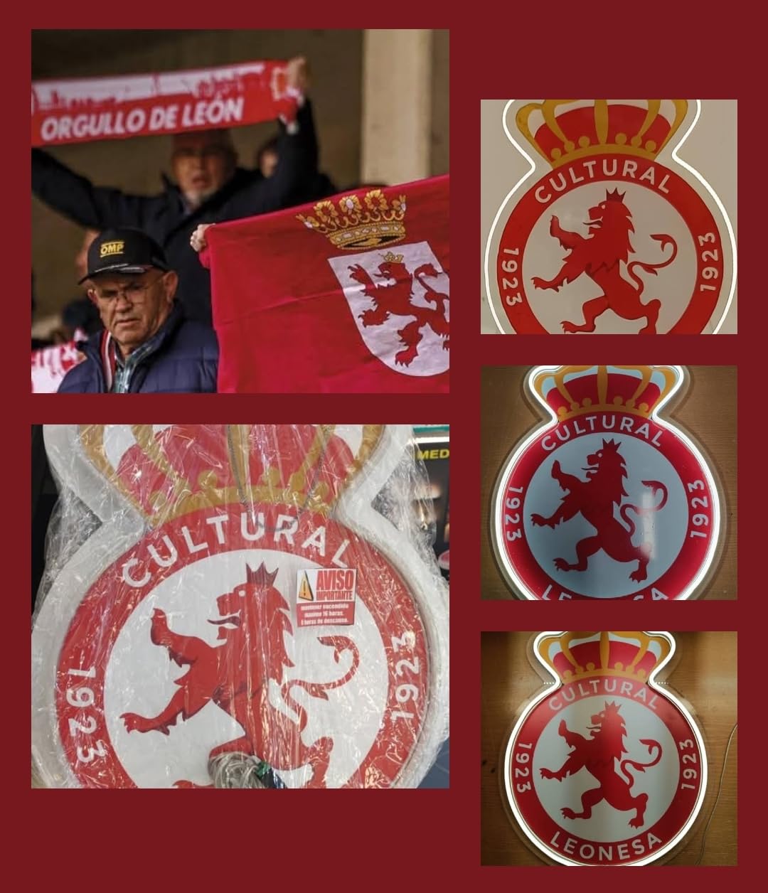 - DISEÑO PREMIUM: Cartel luminoso LED con el escudo de Fútbol Leonesa, coronado por un elegante diseño dorado
