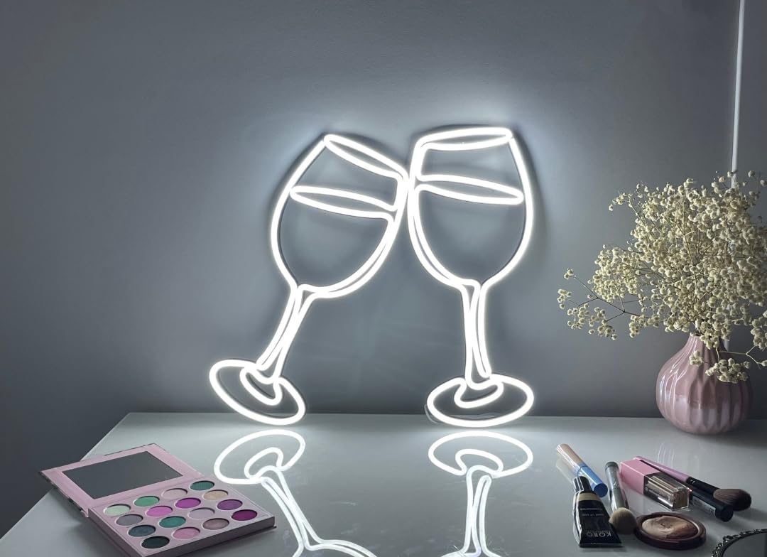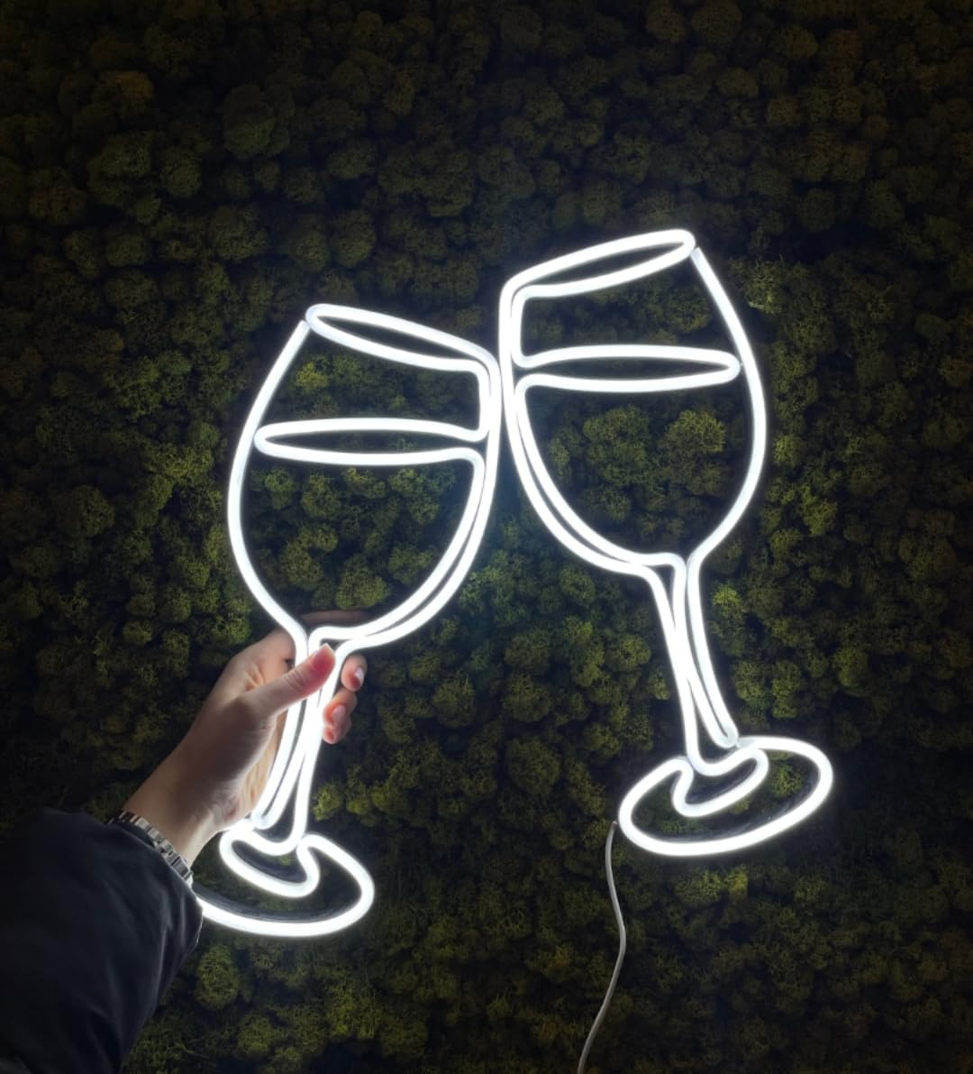 - copas de vino letrero de neón, copas letrero de neón, decoración de pared, vino dirigido, regalo para ella, decoración de pared de vino, decoración de cocina de vino tinto,
