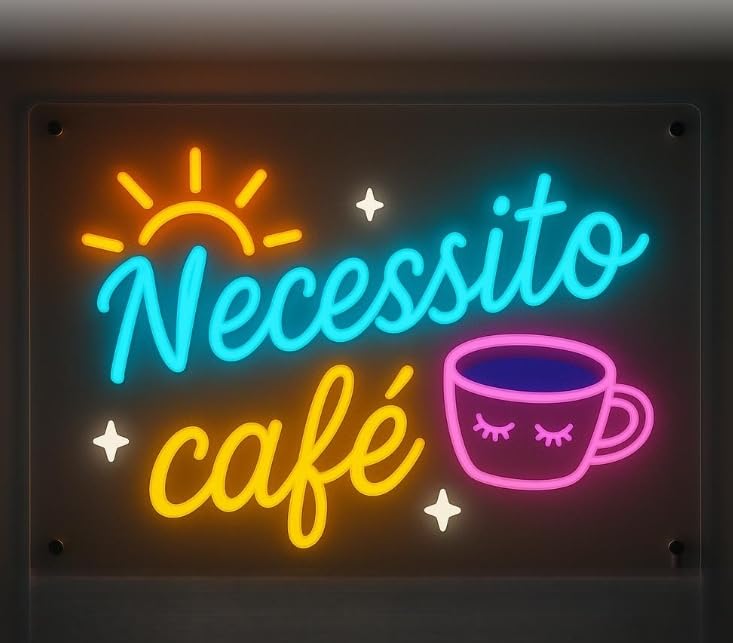Letrero LED de Neón Decorativo, Diseño de Café Necessito, Iluminación Multicolor