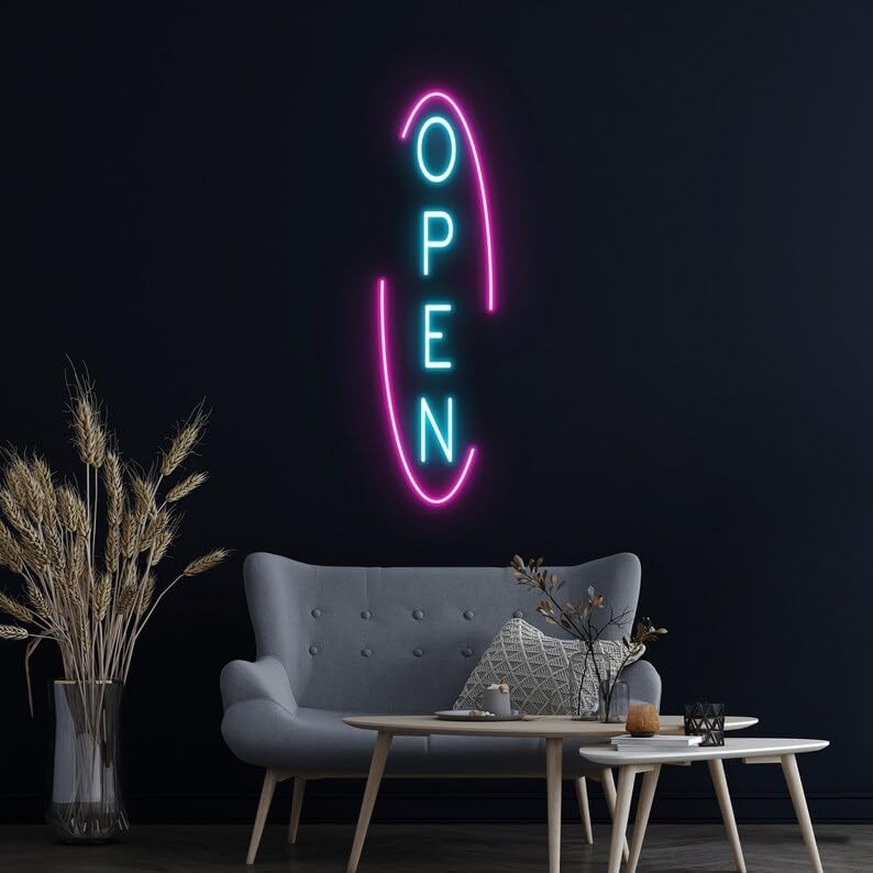 - DISEÑO MODERNO: Letrero de neón LED con letras 'OPEN' en atractiva combinación de colores azul y rosa, perfecto para crear un ambiente llamativo
