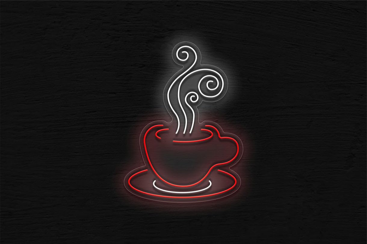 - DISEÑO MODERNO: Letrero LED con diseño de taza de café humeante, perfecto para decorar cafeterías, restaurantes o espacios modernos