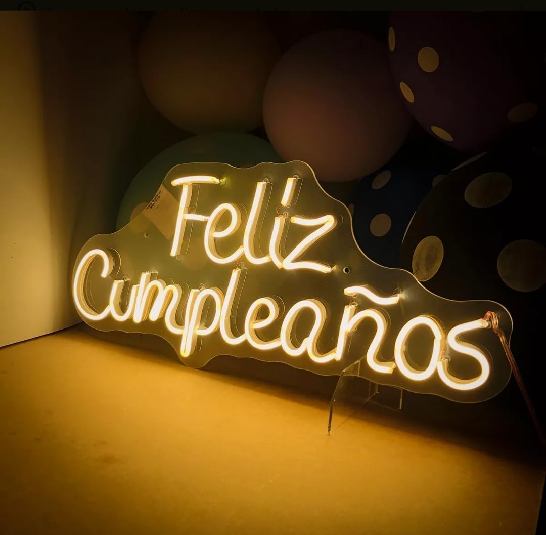 Letrero LED Neón 'Feliz Cumpleaños', Luminoso Decorativo para Fiestas, Luz Cálida