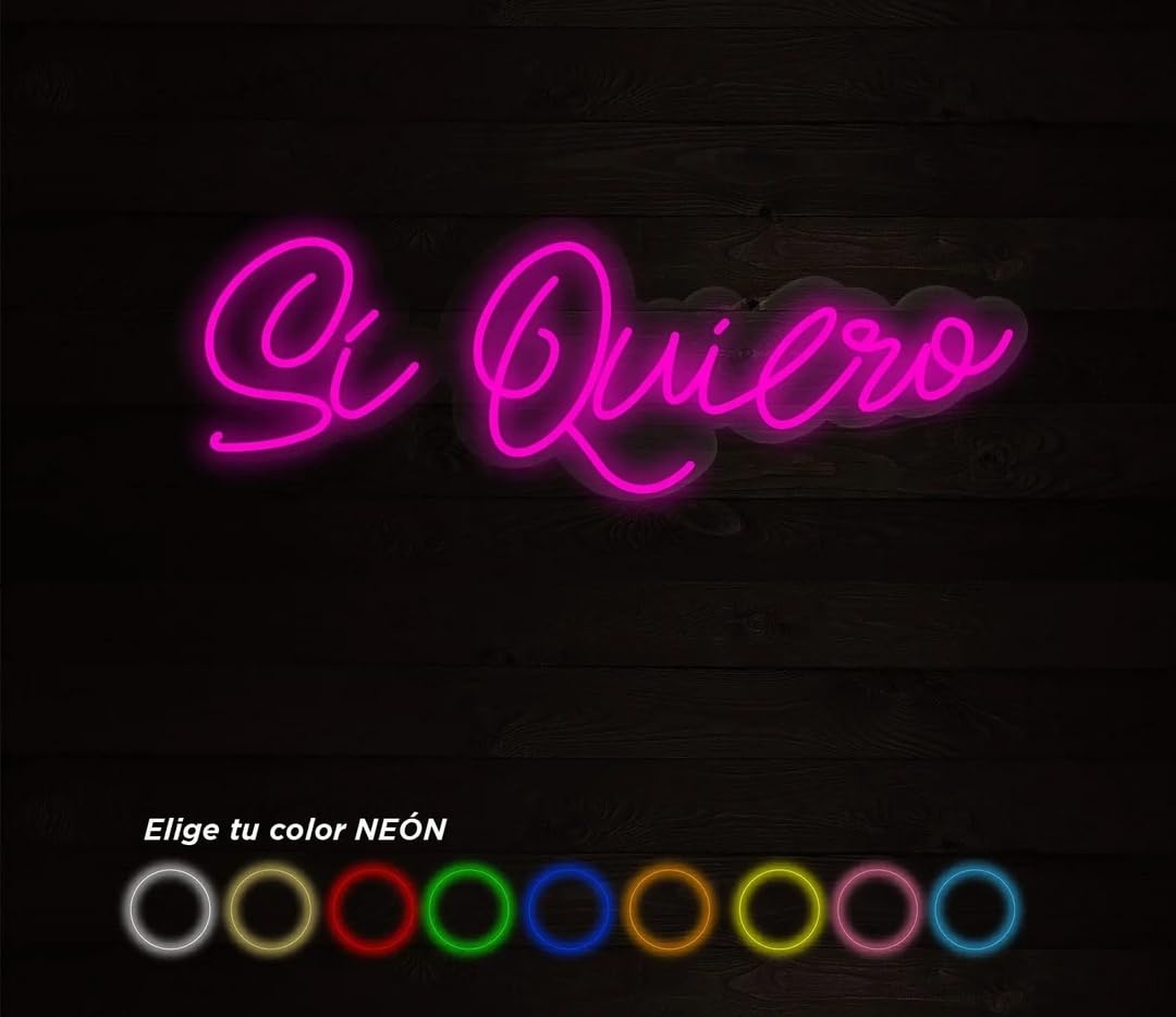 Letrero LED Neón 'Si Quiero' para Bodas, 9 Colores Disponibles, Decoración Romántica para Eventos