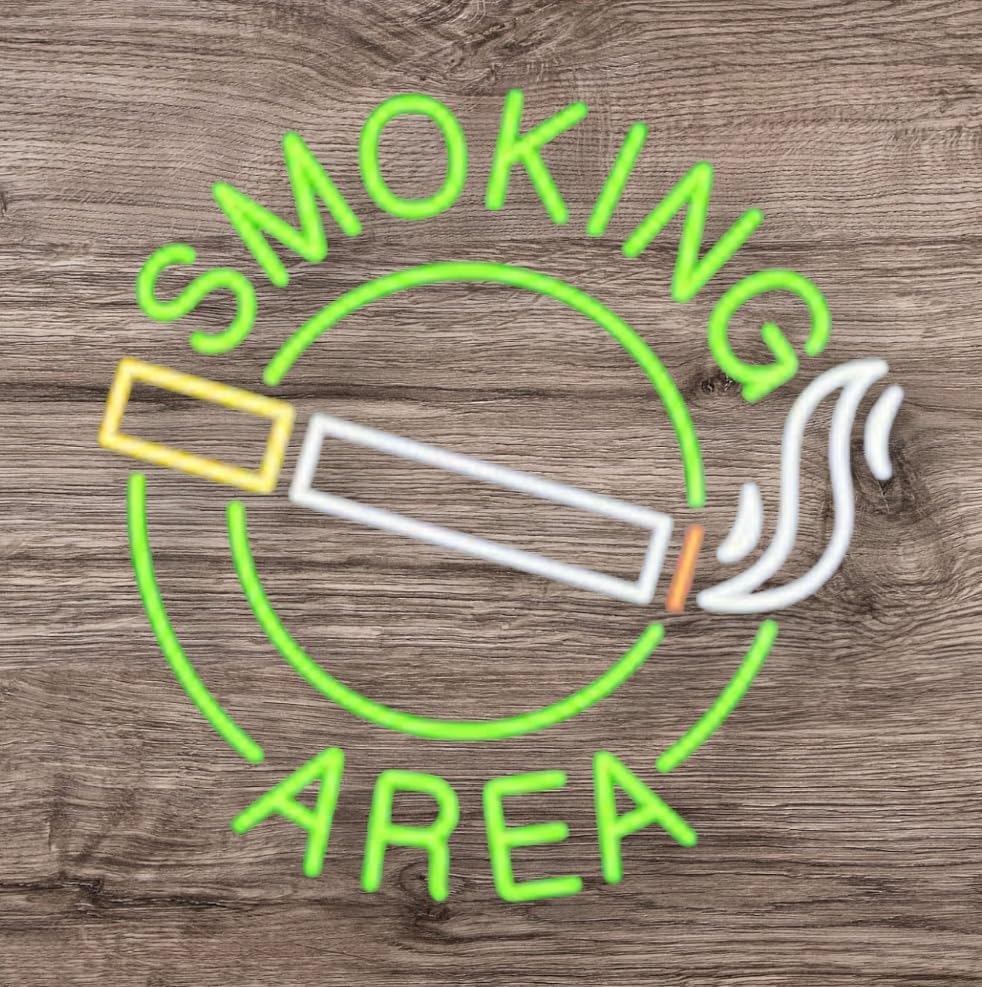 - DISEÑO LUMINOSO: Letrero de neón LED con texto 'SMOKING AREA' en verde brillante, perfecto para señalización nocturna