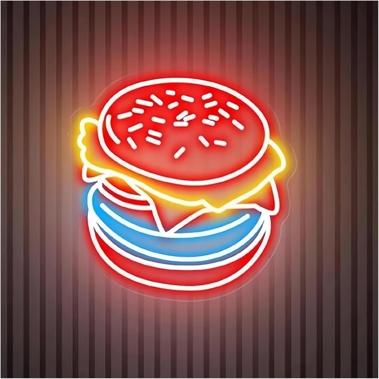 - Letrero de neón de hamburguesa, letrero de luz de neón de hamburguesa, decoración de pared para el hogar, decoración de cafetería, restaurante, arte de neón de comida rápida.