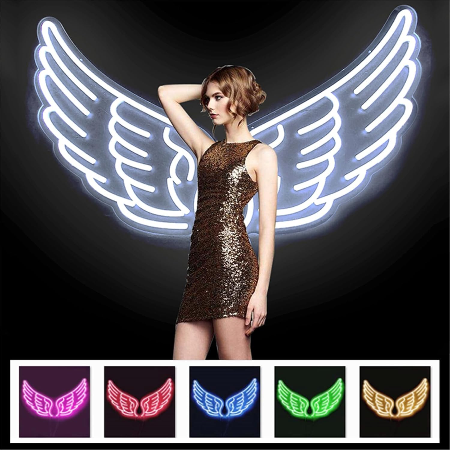 - DISEÑO LLAMATIVO: Luz LED decorativa en forma de alas de ángel que crea un efecto visual impresionante con su brillante neón azul