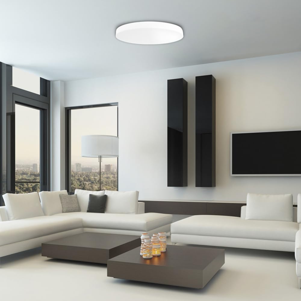 - 🌟 Diseño Elegante y Versátil: Su diseño blanco le da un toque moderno y sofisticado a cualquier habitación. Ya sea en la cocina o el balcón, este plafón LED complementa perfectamente cualquier estilo decorativo.
